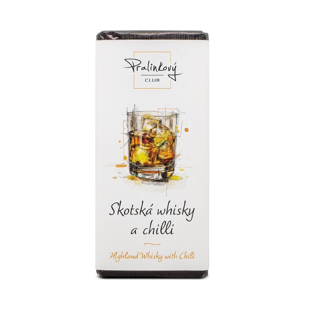 Výrazná pralinková čokoláda se skotskou whisky, jemně pálivým chilli a špetkou kajenského pepře. Uvnitř krémová ganache s lehce hřejivým koncem, zvenku kvalitní hořká čokoláda. Spojení, které je silné, ale ne přehnané – ideální, když máte chuť na něco dospělého.